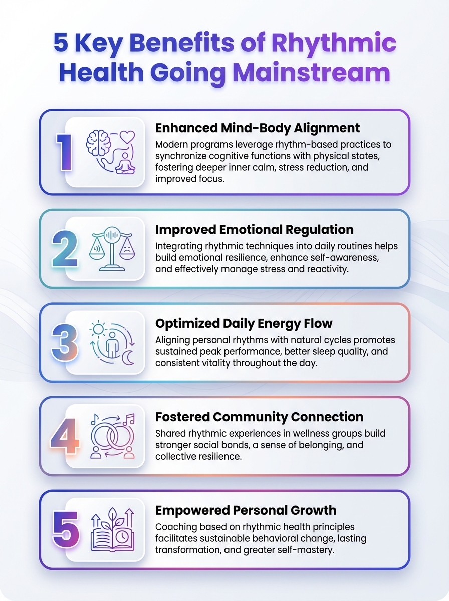 Explore how rhythmic health and traditional healing systems go mainstream. This infographic highlights the 5 key benefits.